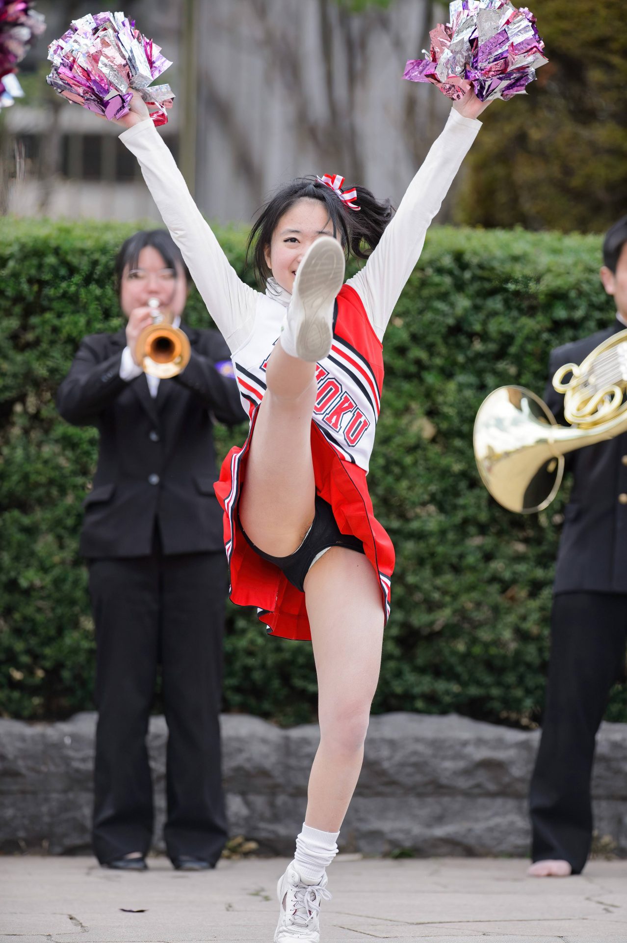 【画像】チアガールさん、大の字で飛ぶ